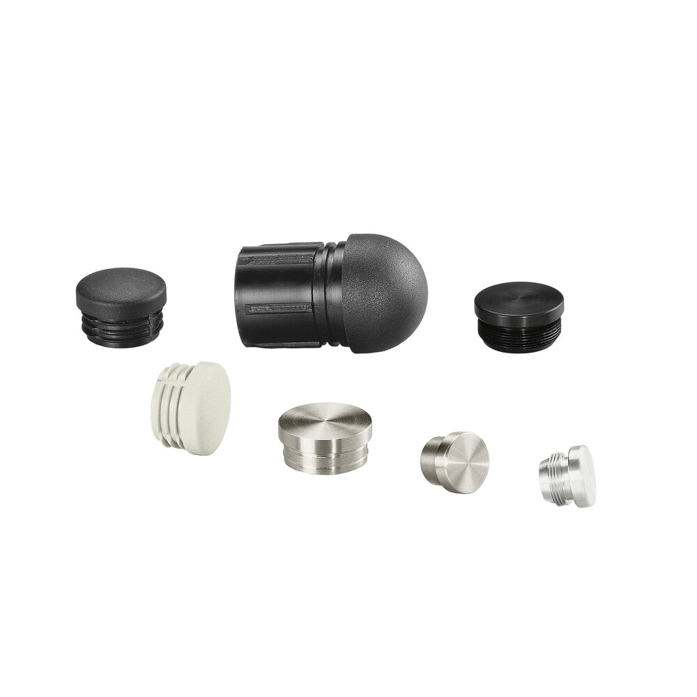 Type RK-PA van glaskogelversterkt polyamide PA6, zwart, kleur als RAL 9005 of in grijs-wit kleur als RAL 9002, halfmat met fijne structuur.