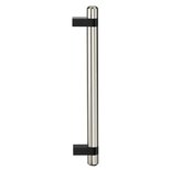 Voet ø35x2 mm roestvrij stalen buisl, materiaal nr. 1.4301, fijngeslepen. Eindstukken van rond roestvrij staal, materiaal nr. 1.4305, fijngeslepen. Grepen van geëxtrudeerd aluminium AlMgSi 0,5, matglanzend, zwart geëloxeerd.