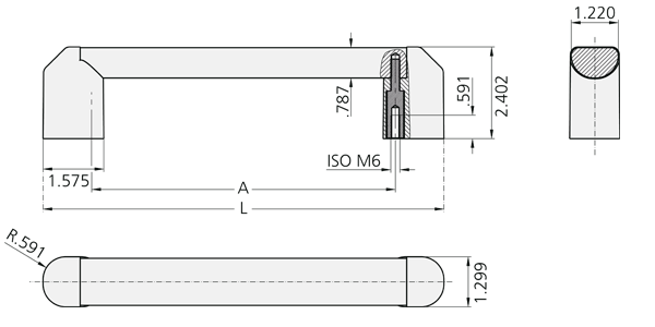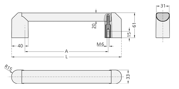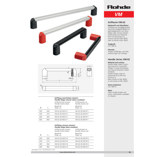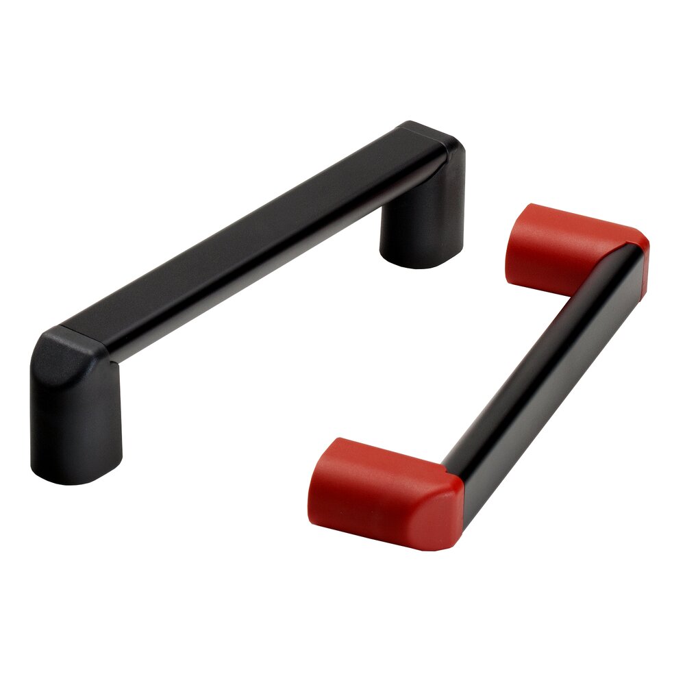 Greepstang uit glaskogelgestraald, massief geëxtrudeerd ovaal aluminiumprofiel (AlMgSi 0,5). Natuurlijke kleuren of zwart geanodiseerd. Greepvoet uit polyamide PA 6 met fijne structuur in zwart (gelijkend op RAL 9005) of rood (gelijkend op RAL 3020).