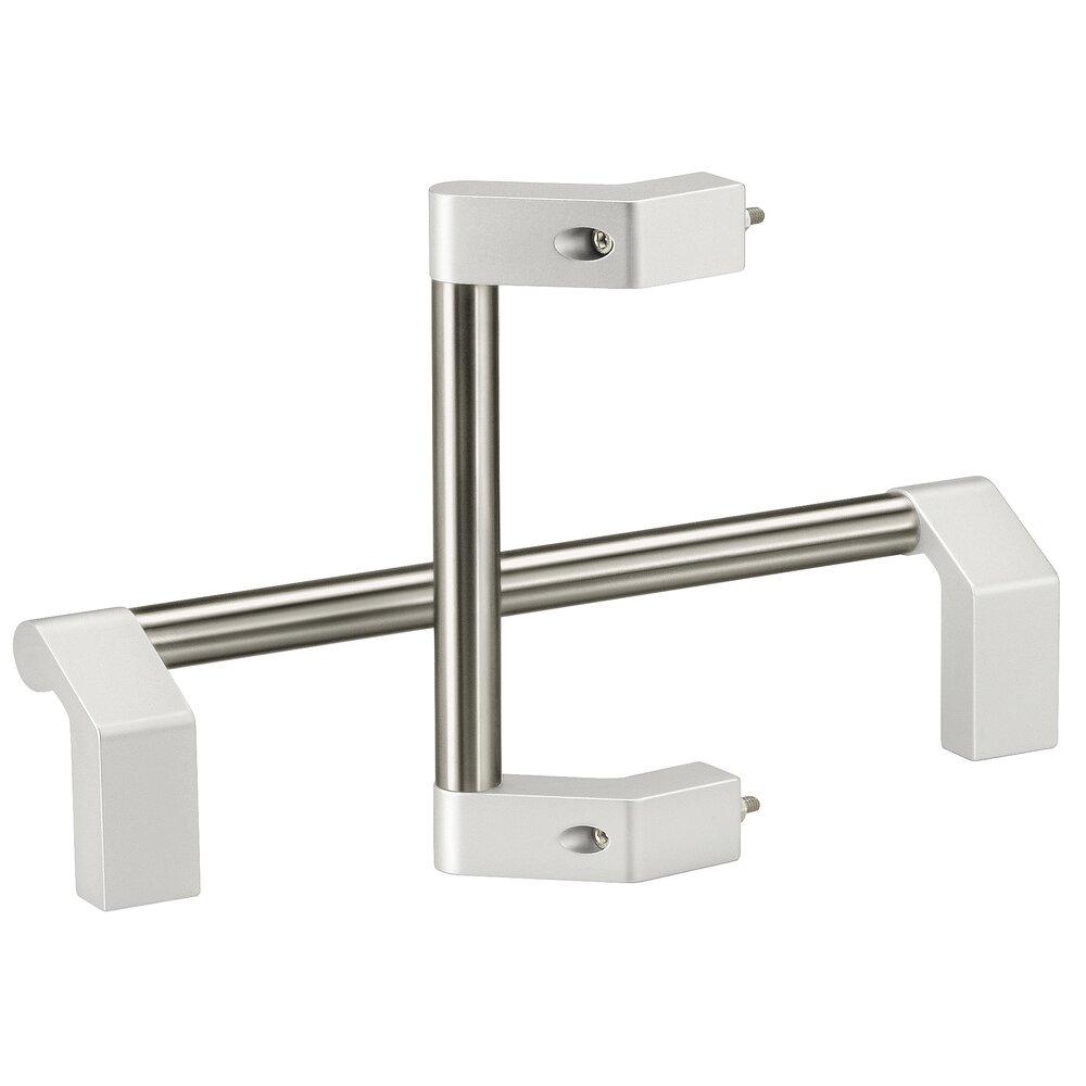 buishouder van geëxtrudeerd aluminium AlMgSi 0,5, matglanzend, naturel geëloxeerd. Buis en verbindingsschroeven van roestvrij staal, materiaalnr. 1.4301; buis fijngeslepen.