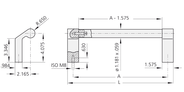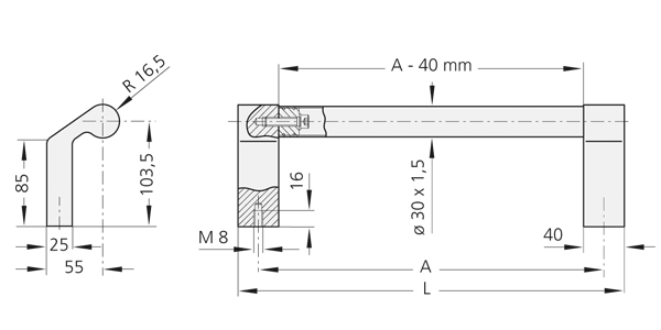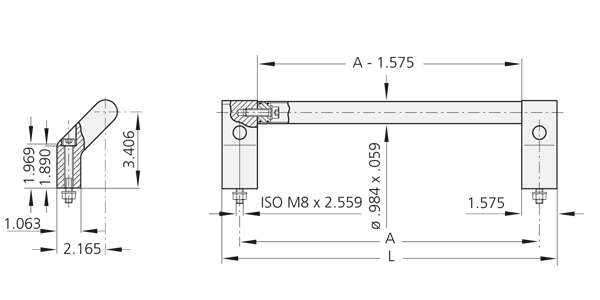 handgreeptype TL.HH-25 voor montage inclusief inbusbouten M8x65 DIN 912, roestvrij stalen moeren en sluitringen; andere handgreeptypes zonder bevestigingsmateriaal.