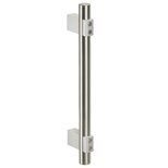roestvrij stalen buis, materiaalnr. 1.4301, fijngeslepen. Buishouder van aluminium AlMgSi 0,5, matglanzend, naturel geëloxeerd. Eindstukken van rond roestvrij staal, materiaalnr. 1.4305, fijngedraaid.