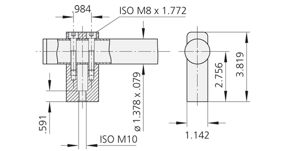 montage door middel van 4 inbusbouten DIN 912. Bij montage aan de voorzijde is montage van de greep bij de klant noodzakelijk.