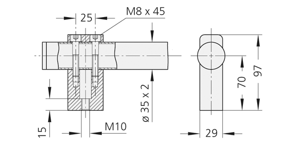 bij bevestiging aan de voorzijde inclusief roestvrij stalen inbusbouten DIN 912, moeren DIN 934 en sluitringen DIN 125.