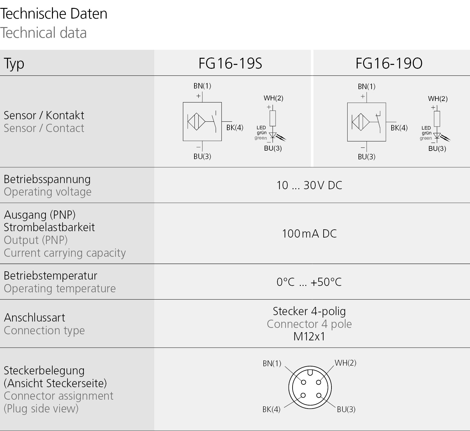 | Tipo de produto FG16-19S | Descrição Capacitive sensor (NO contact) | Nº artigo FG16-19S.150.84 3D+CAD |