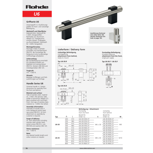 Puxador universal em 2 tamanhos de modelos para fixação pela frente e pela traseira em máquinas e instalações técnicas.