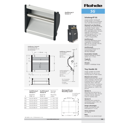 可变长度的嵌入式拉手, 例如用在壳体门或者薄钢板上。