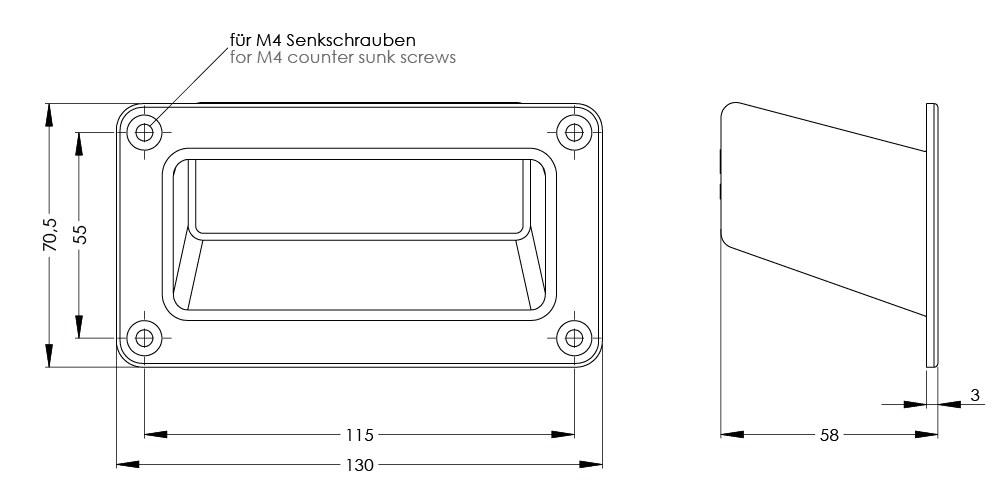 将把手放入 外壳壁的凹口中, 然后在前面用 4 个 埋头螺栓固定; 不包含在供货范围内。